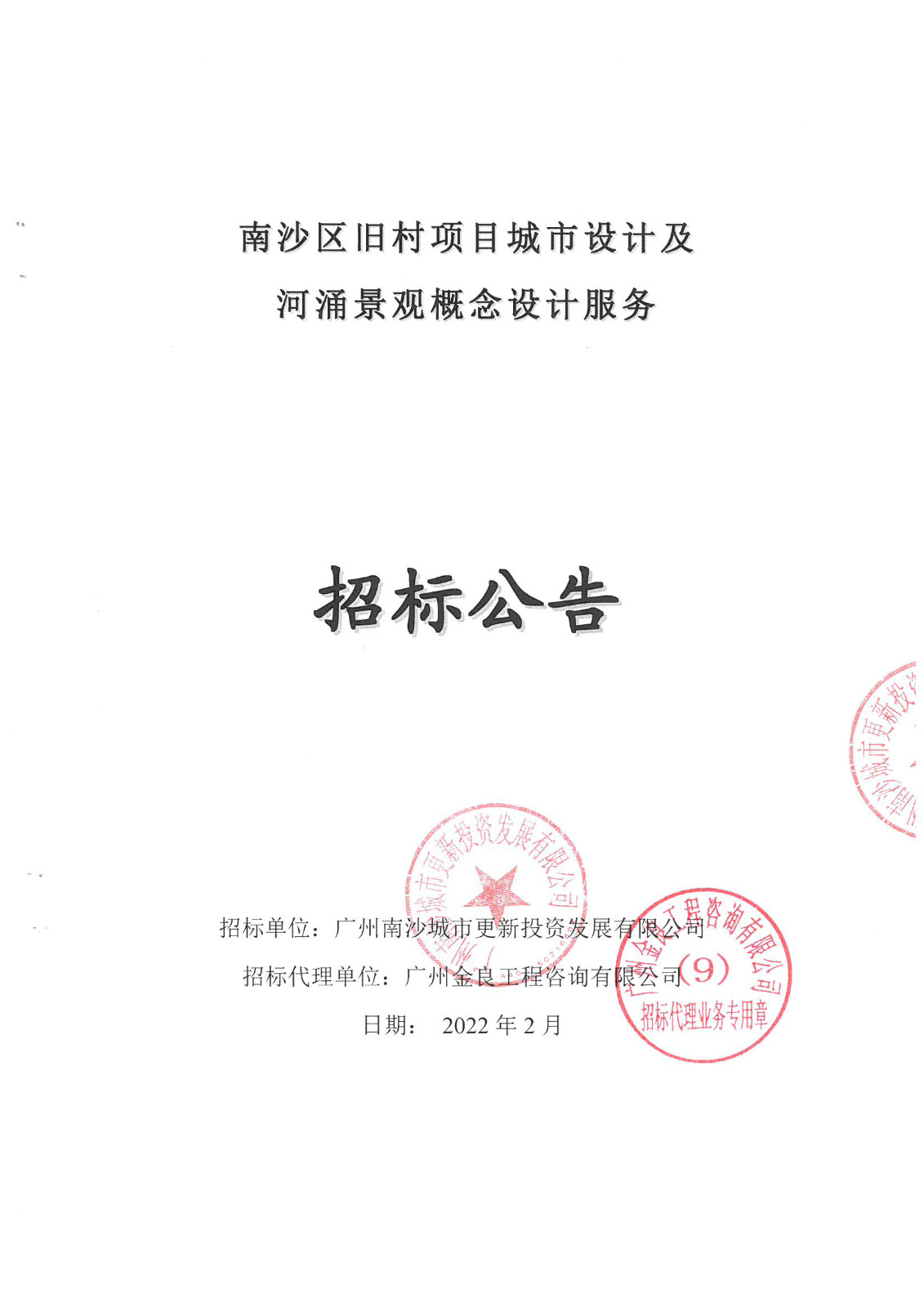 南沙区旧村项目城市设计及河涌景观概念设计项目招标公告