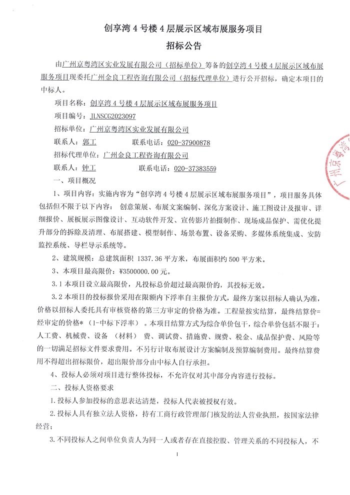 创享湾4号楼4层展示区域布展服务项目招标公告