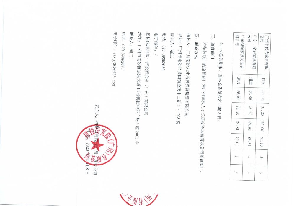越秀天悦江湾2#、3#栋372套住宅家具采购项目中标结果公告