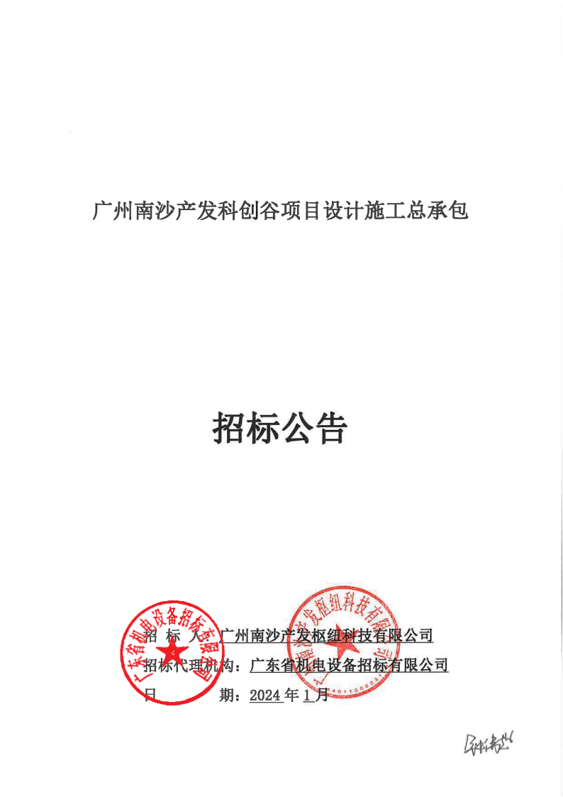 广州南沙产发科创谷项目设计施工总承包招标公告