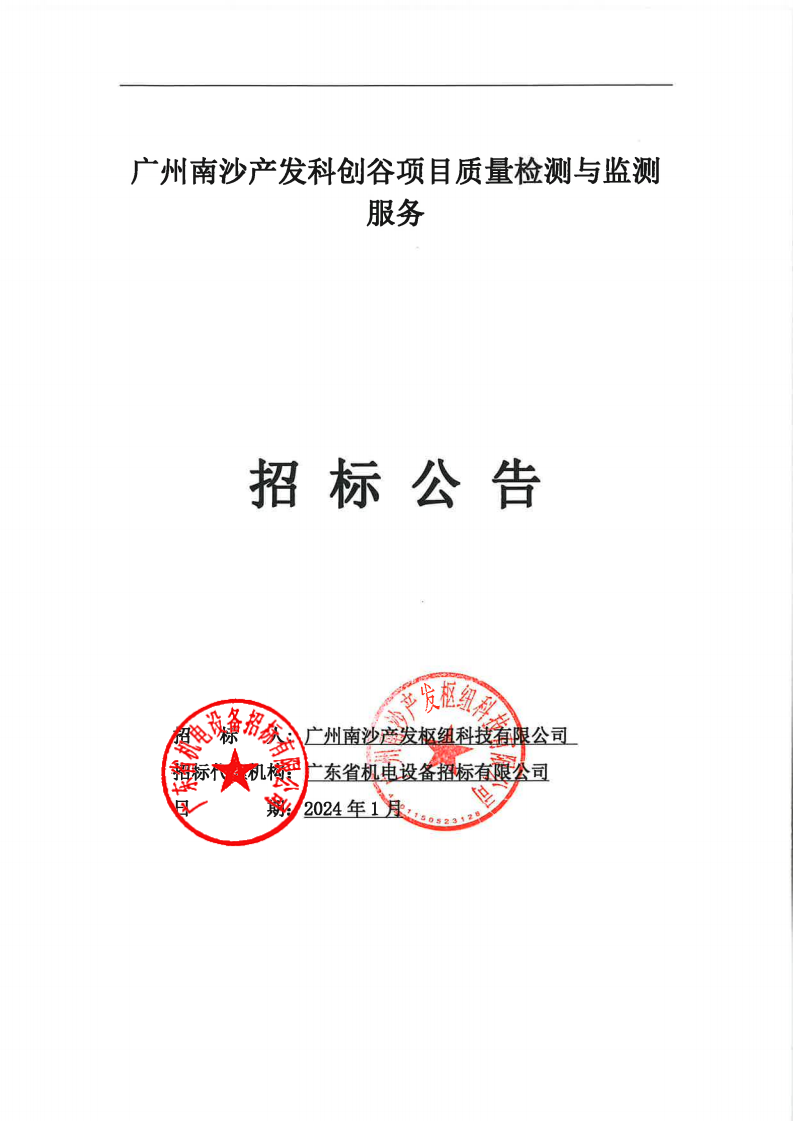 广州南沙产发科创谷项目质量检测与监测服务招标公告