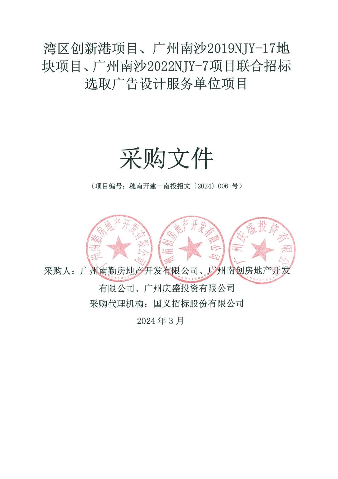 湾区创新港项目、广州南沙2019NJY-17地块项目、广州南沙2022NJY-7项目联合招标选取广告设计服务单位项目招标公告