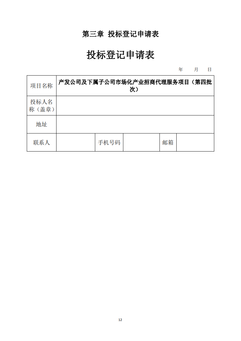 产发公司及下属子公司市场化产业招商代理服务项目招标公告(第四批次)
