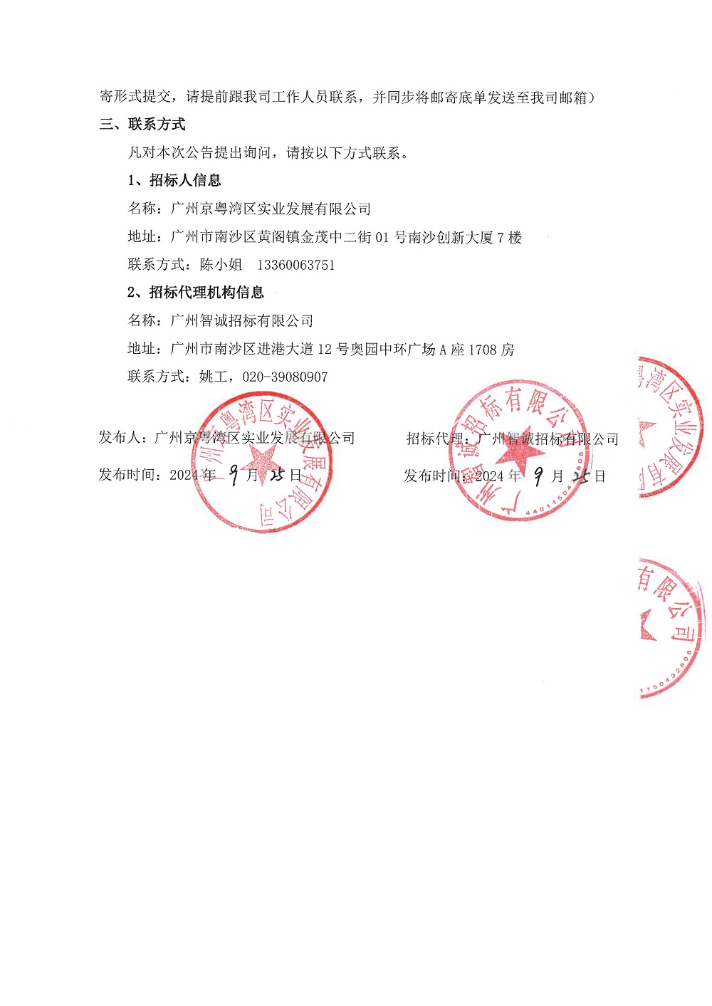 广州京粤湾区实业发展有限公司写字楼场外租赁代理项目(2年期)中标候选人公示