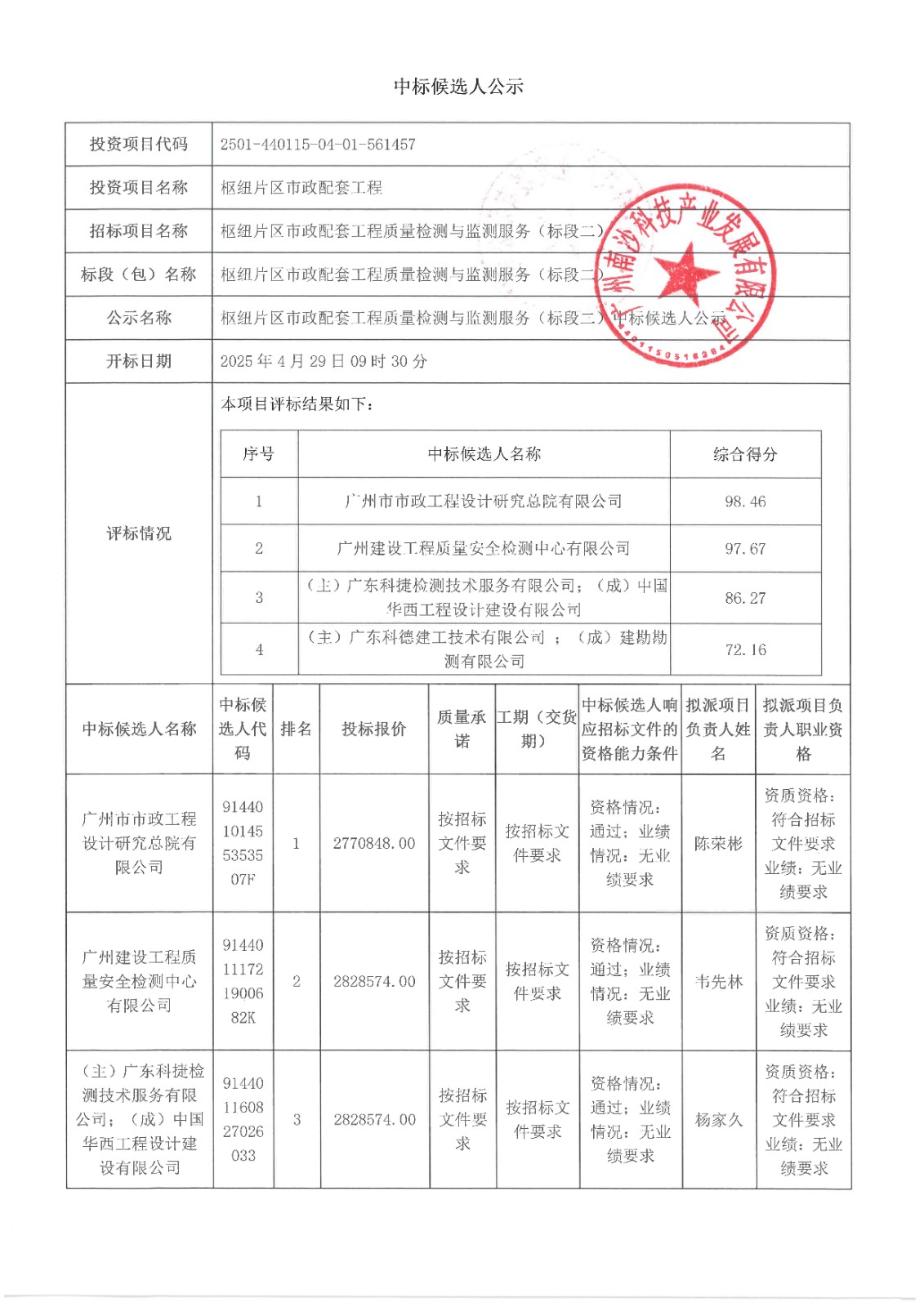 枢纽片区市政配套工程质量检测与监测服务(标段二)【中标候选人公示】