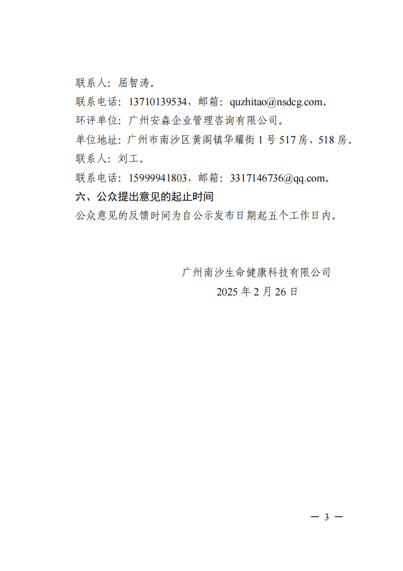 南沙科创中心生命健康产业园项目环境影响报告书报批前公示