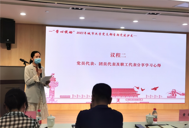 (图|城市运营公司党支部党员代表上台发表学习心得心声)