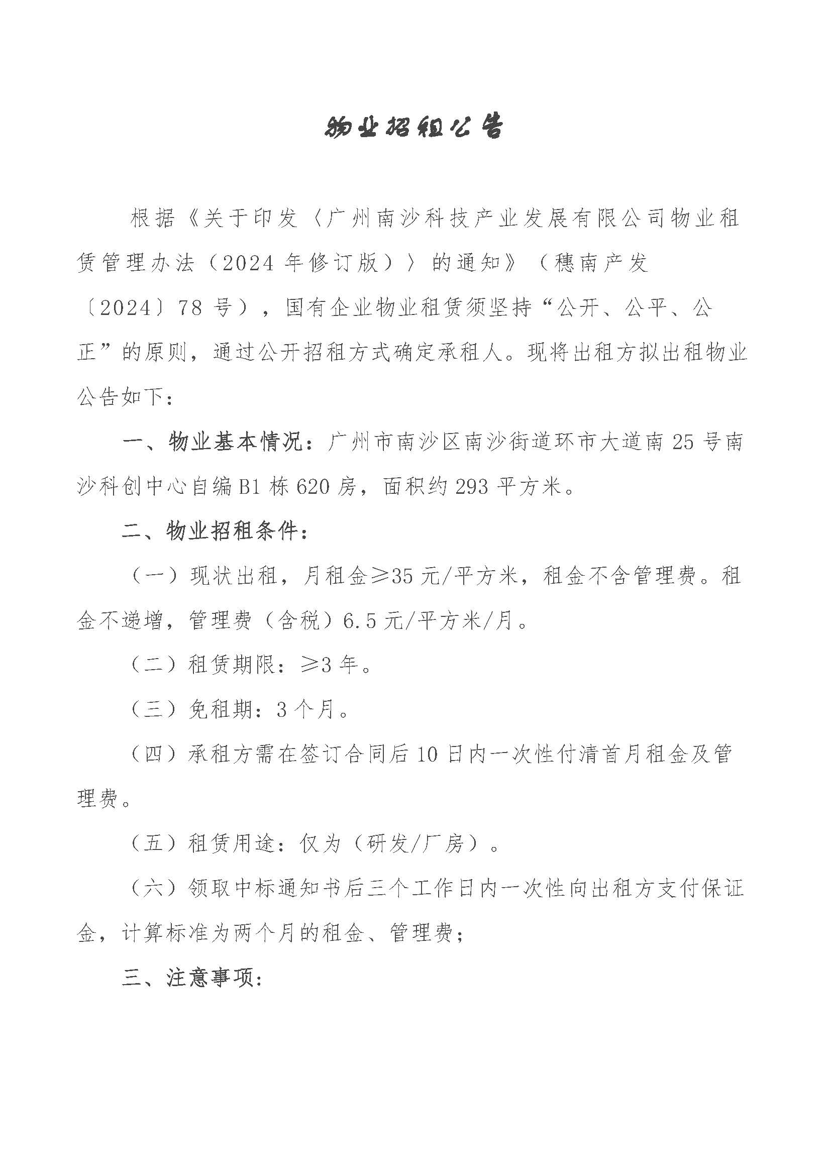 下一篇:物业招租公告-南沙湾园区B1栋603-605房