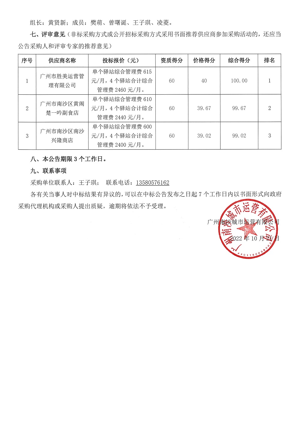 灵山岛尖4个明珠驿站经营资格采购项目中标结果公告