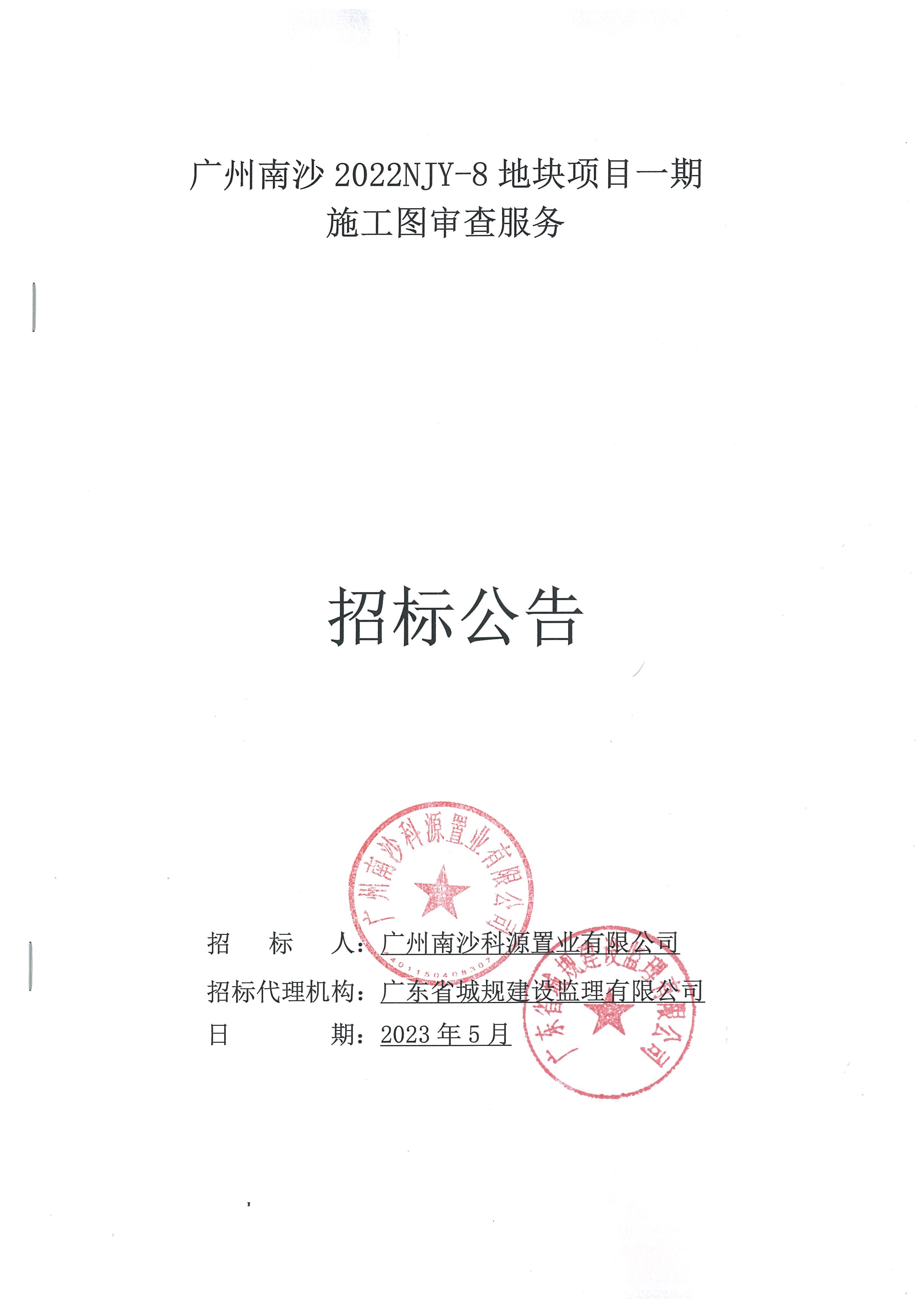 广州南沙2022NJY-8地块项目一期施工图审查服务招标公告