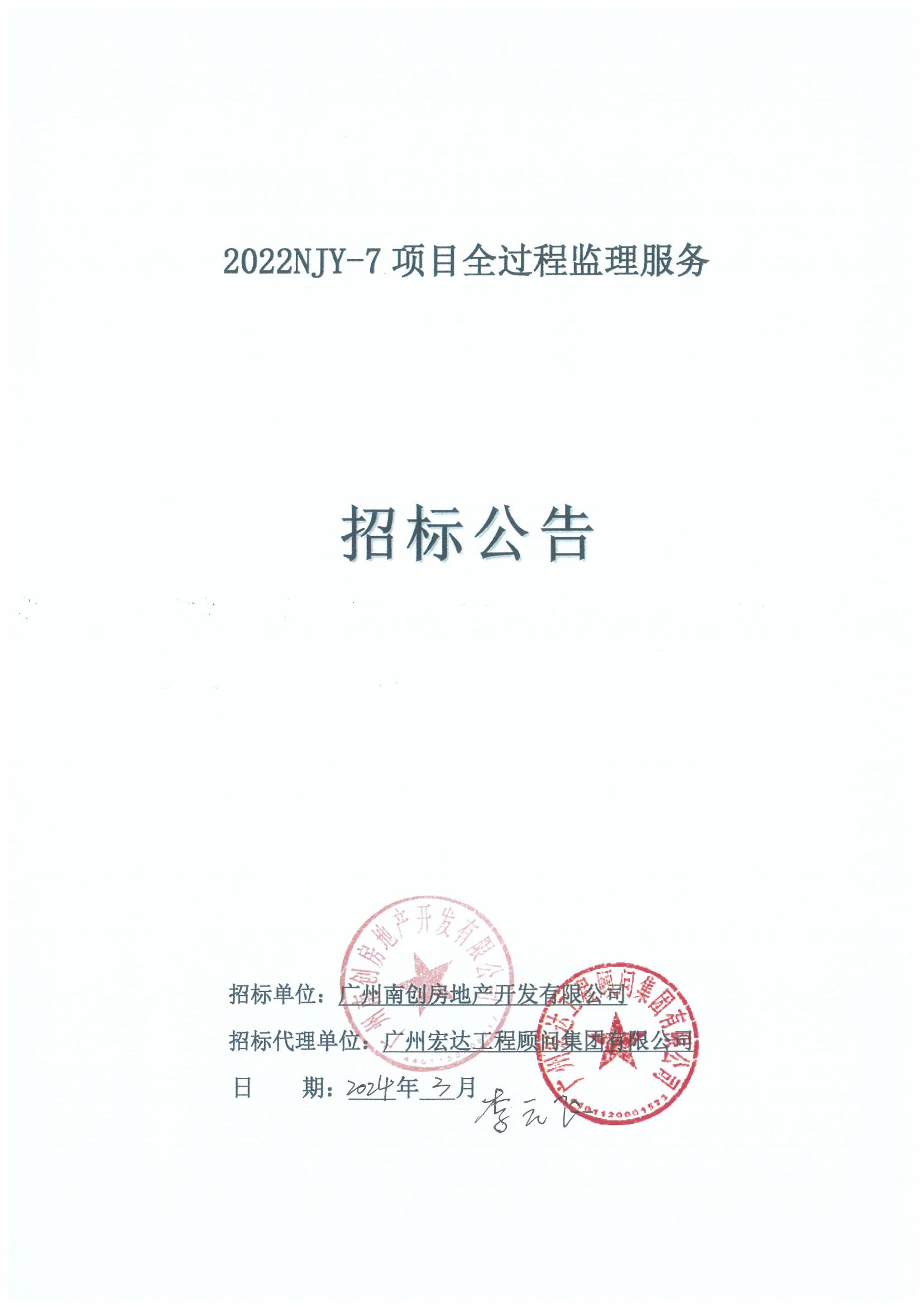 2022NJY-7 项目全过程监理服务招标公告