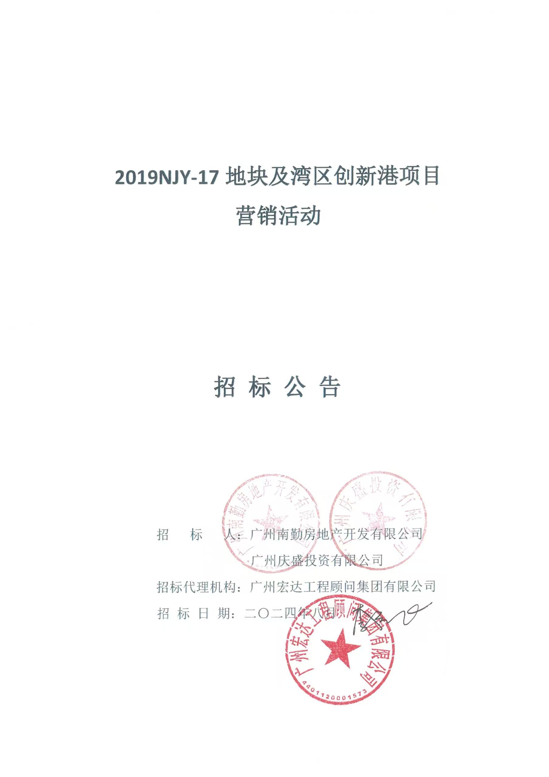 2019NJY-17地块及湾区创新港项目营销活动服务采购招标公告