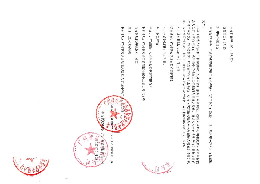 年度物业零星修缮工程采购项目(第二次)中标候选人公示