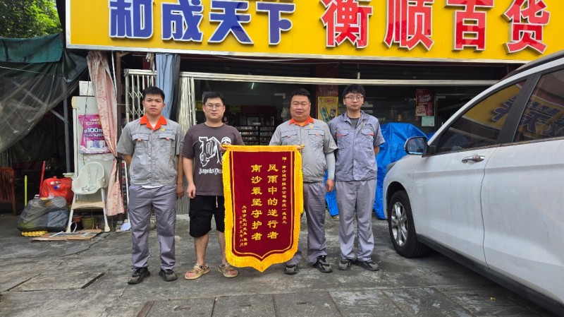 近日,市民刘先生专程向集团下属南沙排水公司运营管理一线班组(小南沙组谢剑锋、林钰舒、成水生、洪佳彬)赠送锦旗,锦旗上“风雨中的逆行者,南沙最坚实守护者”的金字熠熠生辉,对班组成员在防汛抢险中的表现致以敬意。