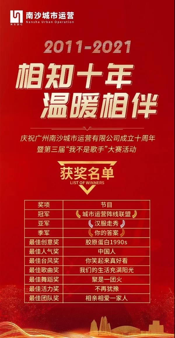 11月3日,集团下属城市运营公司在灵山岛尖地下空间成功举办“相知十年 温暖相伴”——庆祝城市运营公司成立十周年暨第三届“我不是歌手”大赛活动。