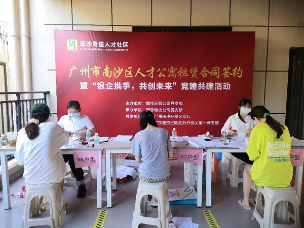 城市运营公司党支部于今年1月与建设银行广州南沙开发区支行党支部、建设银行广东自贸试验区分行第一机关党支部结成党建共建关系。此次,为满足新入住南沙青年人才的需要,三方深入人才社区开展“我为群众办实事”支部共建活动,开设“家门口”的业务办理点,提供网银开通、网上办事、金融理财等服务。