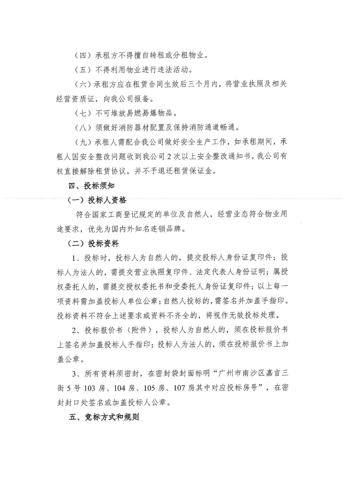 物业招租公告(珺筑水岸项目1#广州市南沙区嘉言三街5号103房、104房、105房、107房铺)